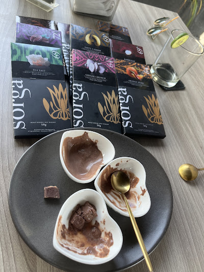 The Cocoa Club by Sorga Chocolate – кафе-кофейня в 10 минутах езды от дворца с отличным кофе, шоколадными десертами и атмосферой. Идеально после прогулки по дворцу, если хочется чего-то сладкого или лёгкого. Кафе находится при шоколадной фабрике Sorga — месте, где делают и продают балийский шоколад ручной работы. В меню кофе всех видов — от эспрессо и латте до капучино и фильтра, шоколадные десерты и лакомства,свежие напитки и лёгкие закуски, которые хорошо сочетаются с шоколадом. Цены на напитки - от 35 до 50к., на десерты и сладости - от 50 до 90к. Само пространство выглядит приятно и атмосферно, можно приобрести кофе или шоколад в подарочной упаковке с собой.