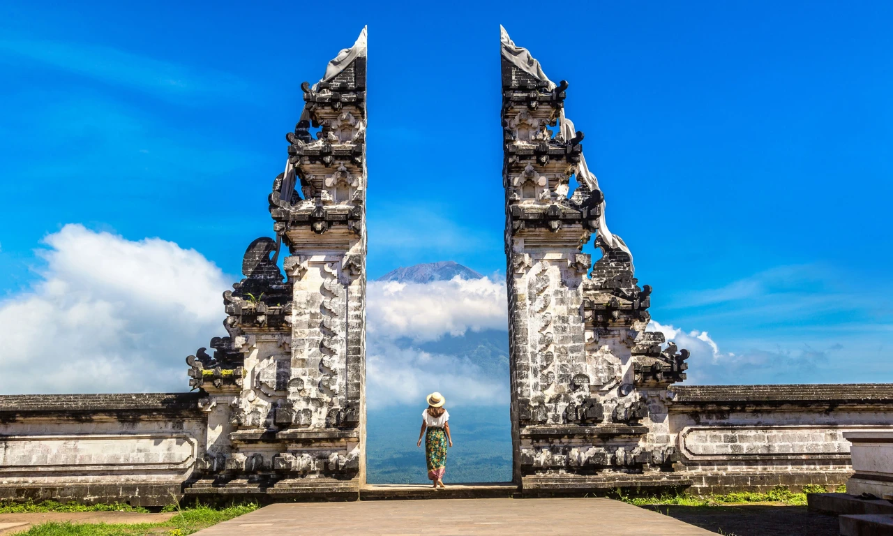 Один из самых известных храмов Бали, расположен примерно в получасе езды от дворца. Здесь находятся те самые «инстаграмные ворота» с видом на вулкан Агунг. Приезжать лучше очень рано утром — с 5:00–6:00, иначе ожидание фото может занять несколько часов. Даже без фотографии храм стоит посещения из-за своей энергетики и расположения на склоне горы.