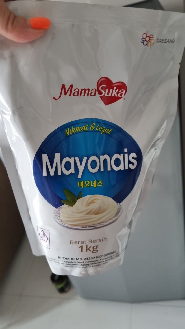 Очень популярный индонезийский бренд, под которым выпускается не только майонез, но еще и куча разных продуктов, начиная от соусов и заканчивая сладостями. Было сложно найти маленький объем, так как в большинстве магазинов представлены только литровые упаковки. Этот образец куплен в “Лотте марте” за 7200 рупий. Состав практически не отличается от Remia, за исключением присутствия глутамата натрия, и жирность майонеза MamaSuka - 67%. Соус тоже густой, но не такой, как предыдущий образец. Белого цвета с очень выраженным уксусным вкусом, который, однозначно, будет перебивать “суть” блюда.