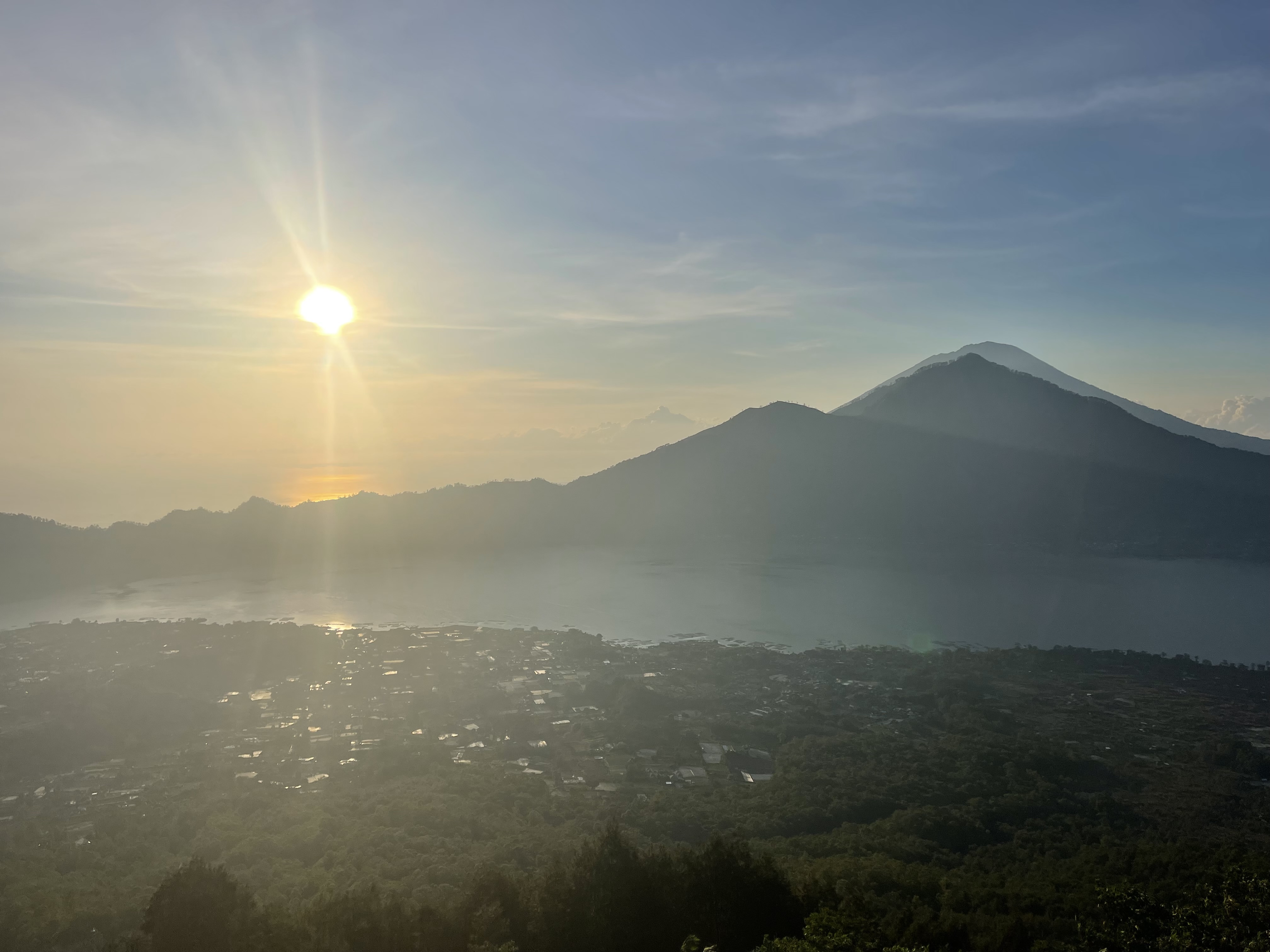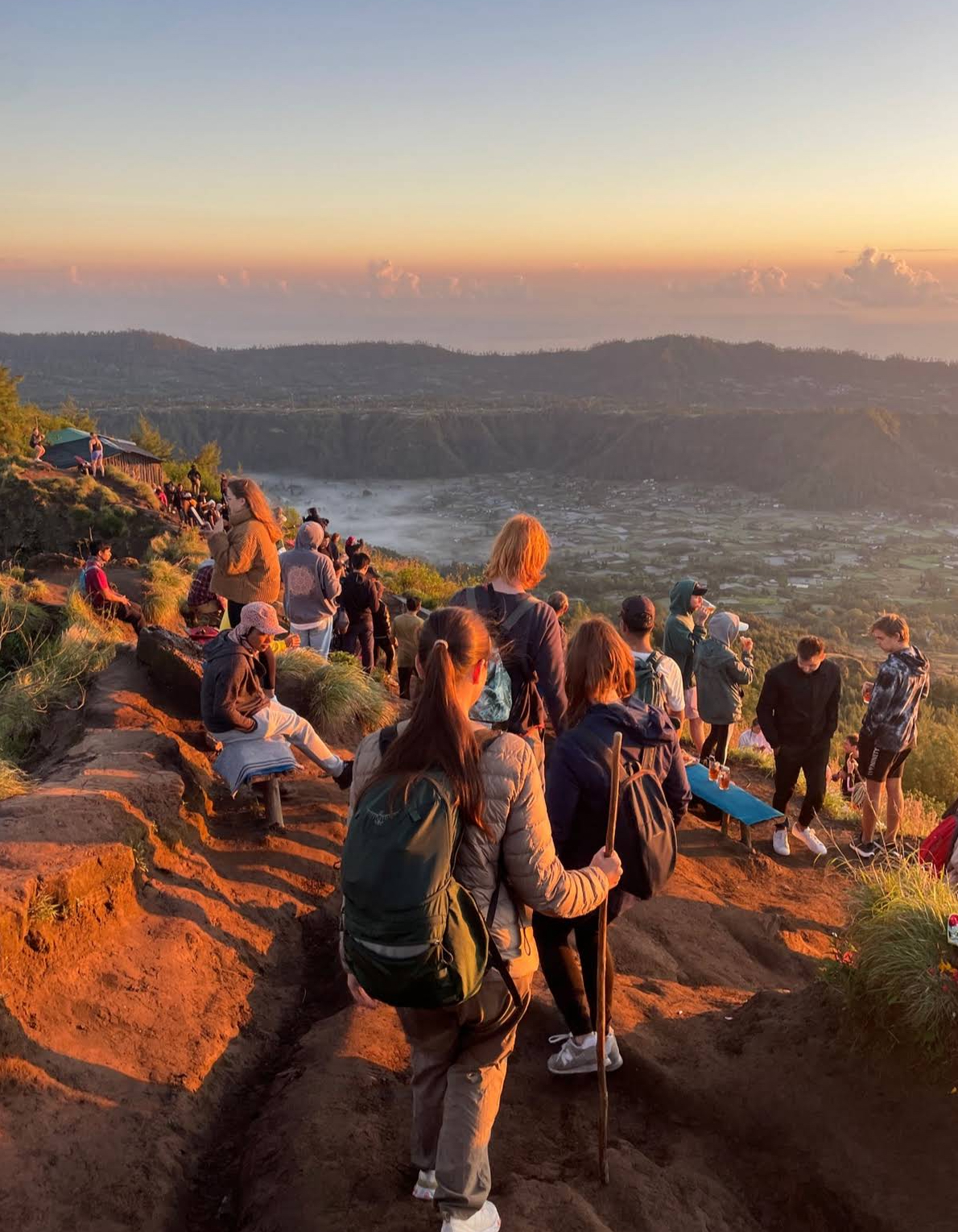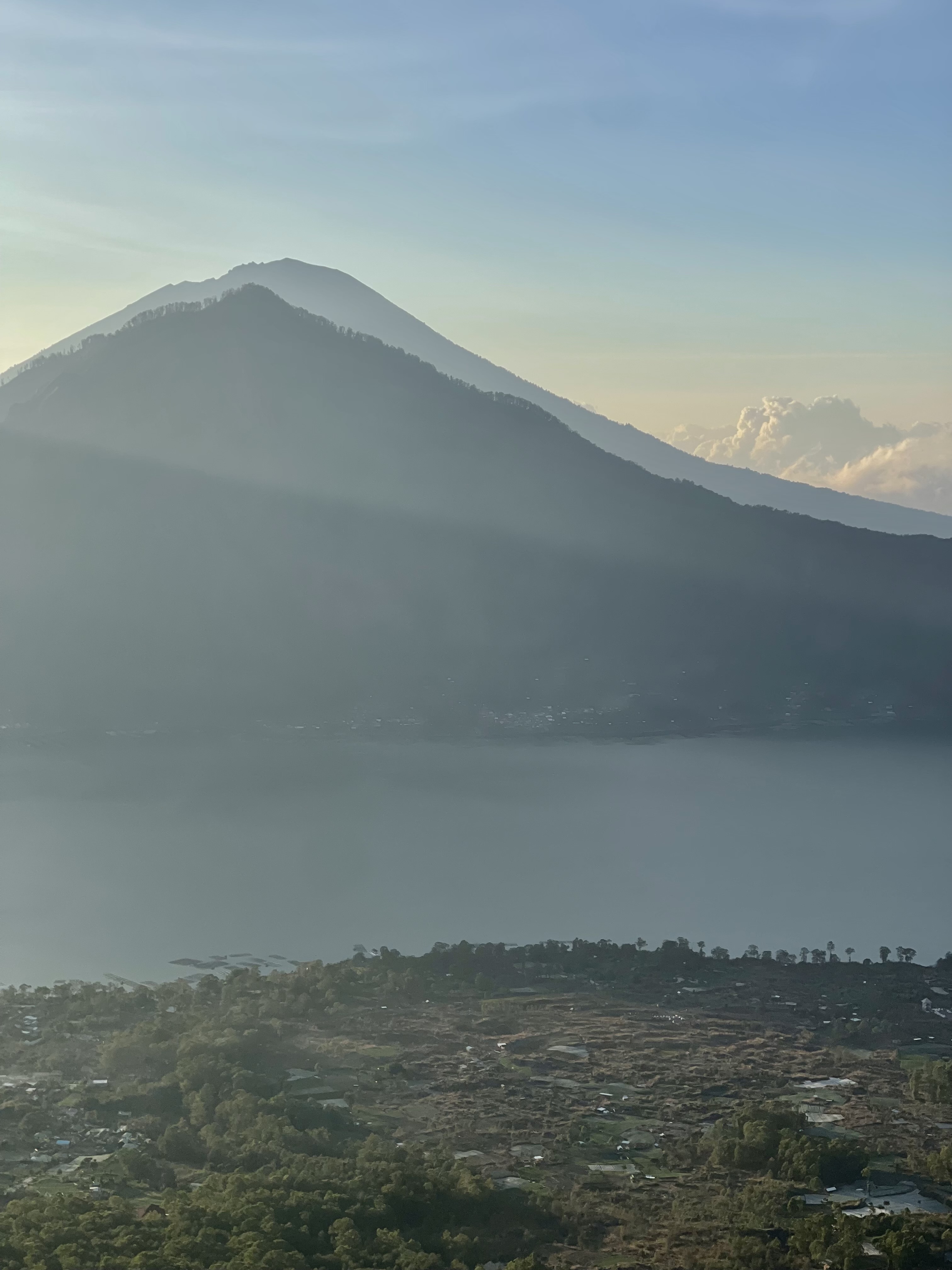 Ночевали в batur exotic villa (рекомендую и как место и как фото локацию). Внимание, дорога до отеля грунтовка в гору, оценивайте трезво свои навыки вождения, особенно ночью. В 4 пошли на подъем на вулкан. В отеле дали с собой завтрак и сказали, что есть 2 тропы easy и hard. Пошли по изи. На ней был пост гидов, которые прям преграждали путь и впарили билеты по 100. Возможно, на хард тропе из нет, но это не точно. Подъем несложный. Наверху можно купить чай, воду и.т.п. желающих вниз и вверх постоянно возят эндурики. Потом спустились к вилле и ещё подрыхли (это прям очень хорошая идея после вставания в 4 утра, всем рекомендую 😂)
