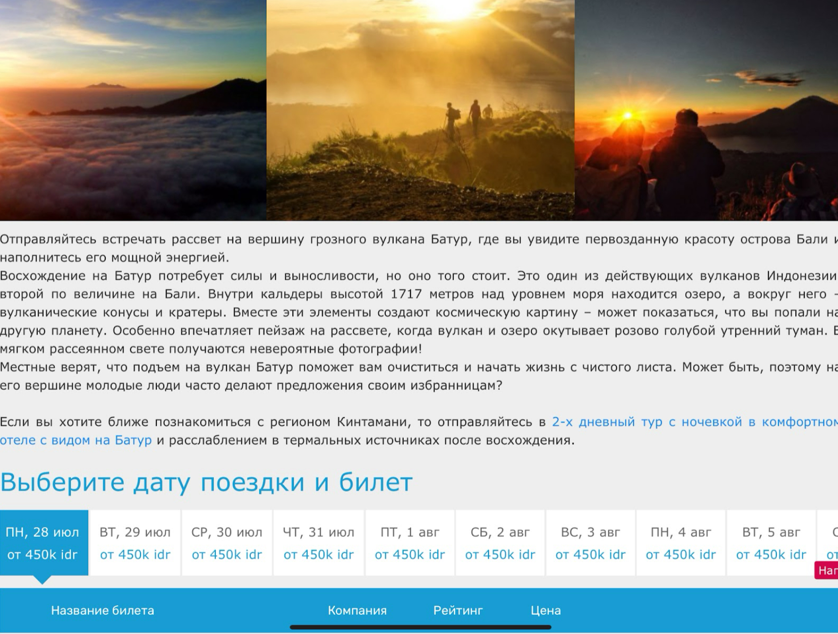 Тур рекомендуется покупать у MyBaliTrips. Стоимость за групповое восхождение с гидом от 450.000 IDR на человека.