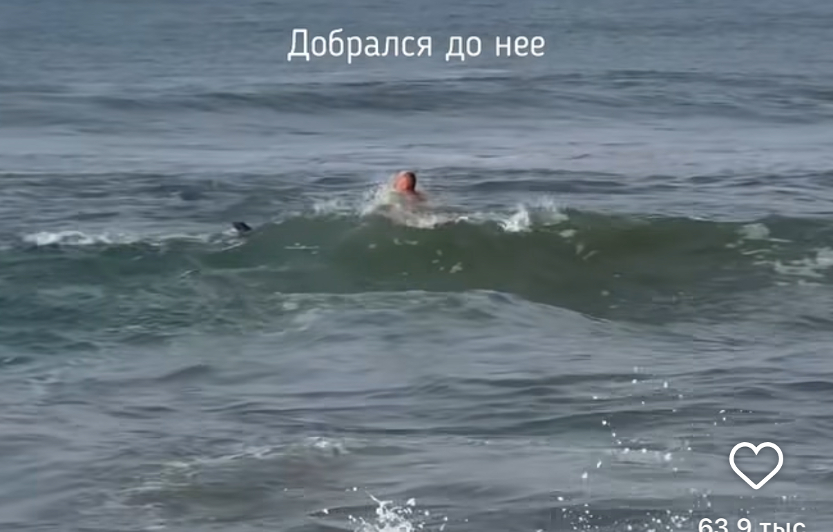 На кадрах, которые сделала жена Евгения, видно как мужчина плывет к уже почти обессилевшему балидогу. Волны довольно сильные, они переодически накрывают и Евгения, и пса с головой. В этот момент, вспоминает отец 9-месячного ребенка, он подумал, что слегка переоценил свои силы.