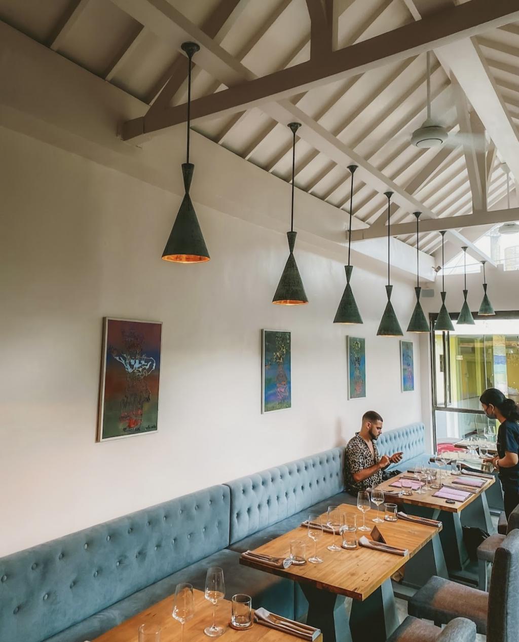 The Royal Kitchen Bali отличается элегантным интерьером, который сочетает в себе традиционные индийские элементы и современные дизайнерские решения.