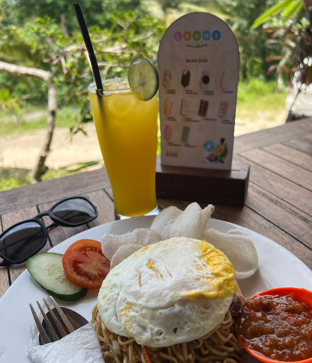 Здесь подают свежие морепродукты, традиционные индонезийские блюда, такие как наси горенг и ми горенг, а также вегетарианские опции.