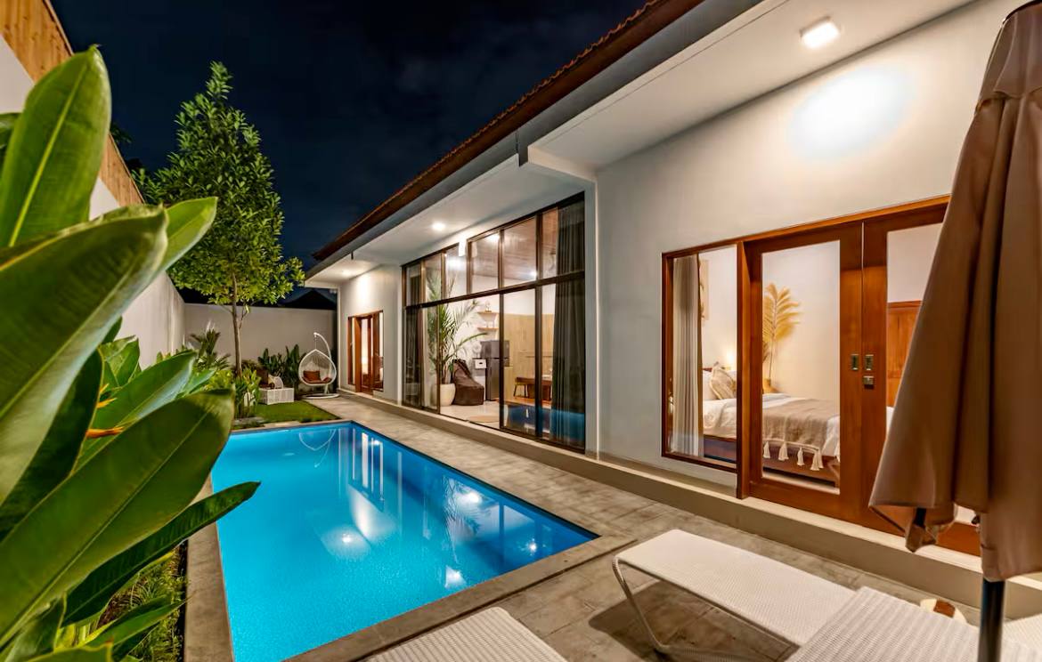 Роскошная вилла с 3 спальнями, включающая бассейн и парковку. Уборка производится трижды в неделю. Вилла находится в 15 минутах от пляжа Бату Болонг. Идеально подходит для хороших и ответственных жиль…